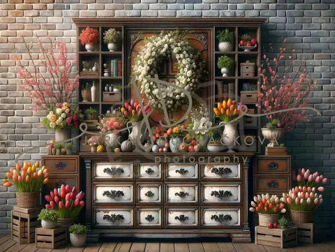 Jarní s květinovou výzdobou - šeříky, tulipány..