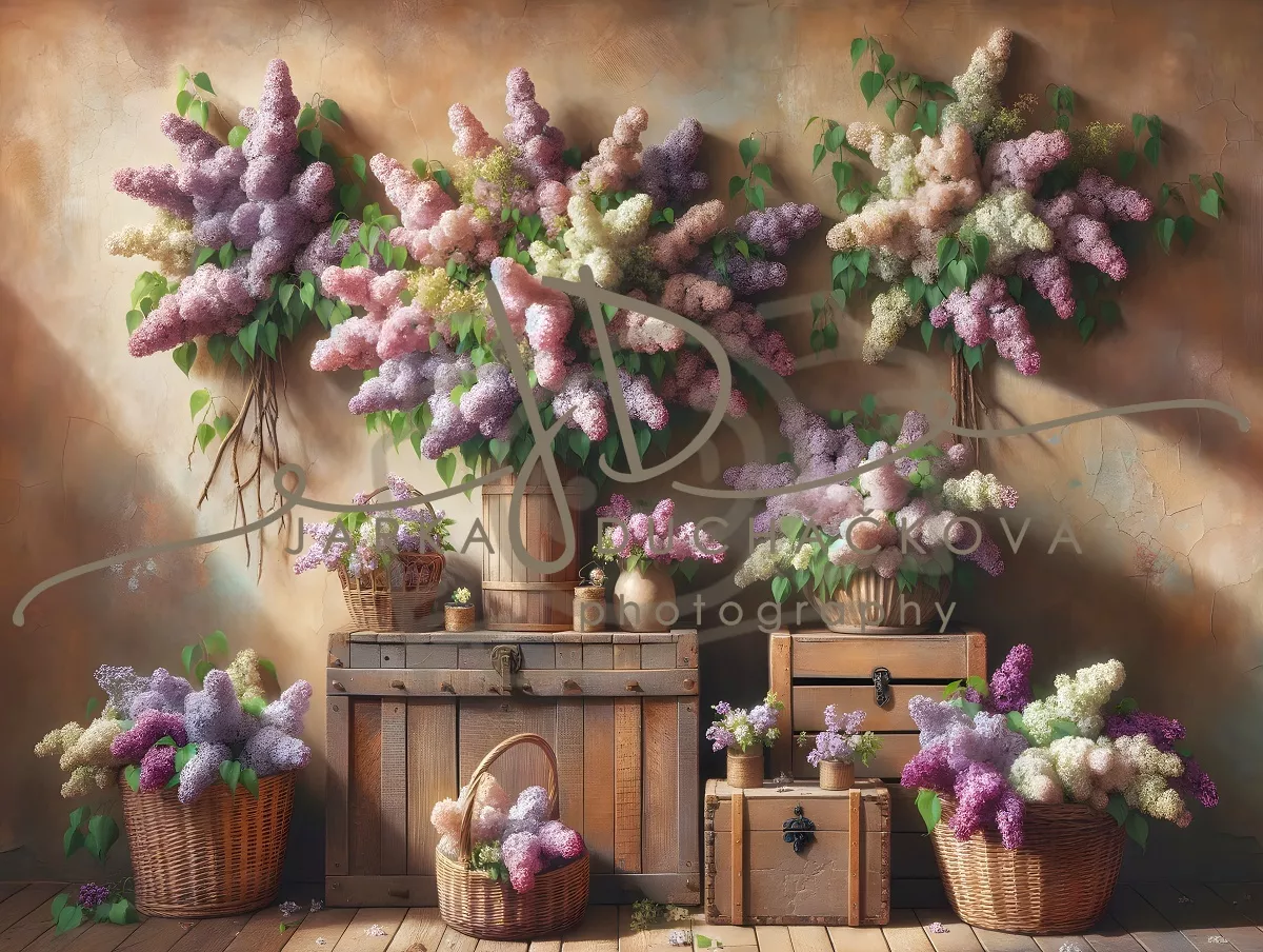 Jarní s květinovou výzdobou - šeříky, tulipány..