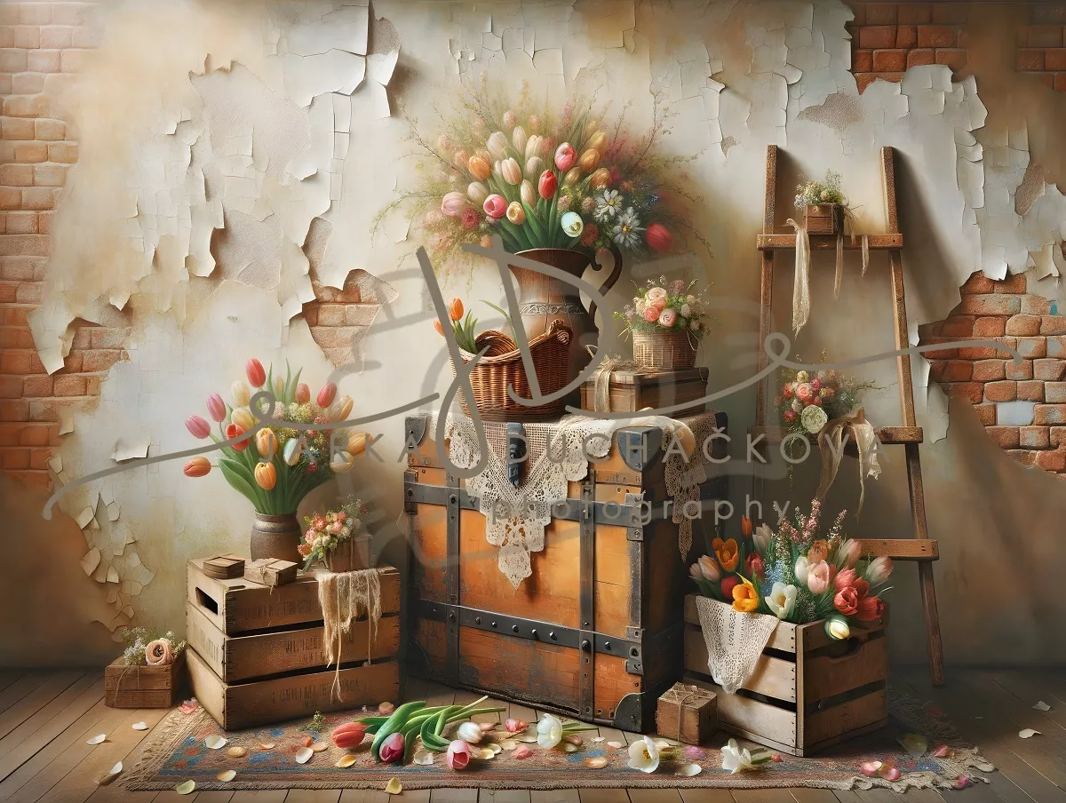 Jarní s květinovou výzdobou - šeříky, tulipány..