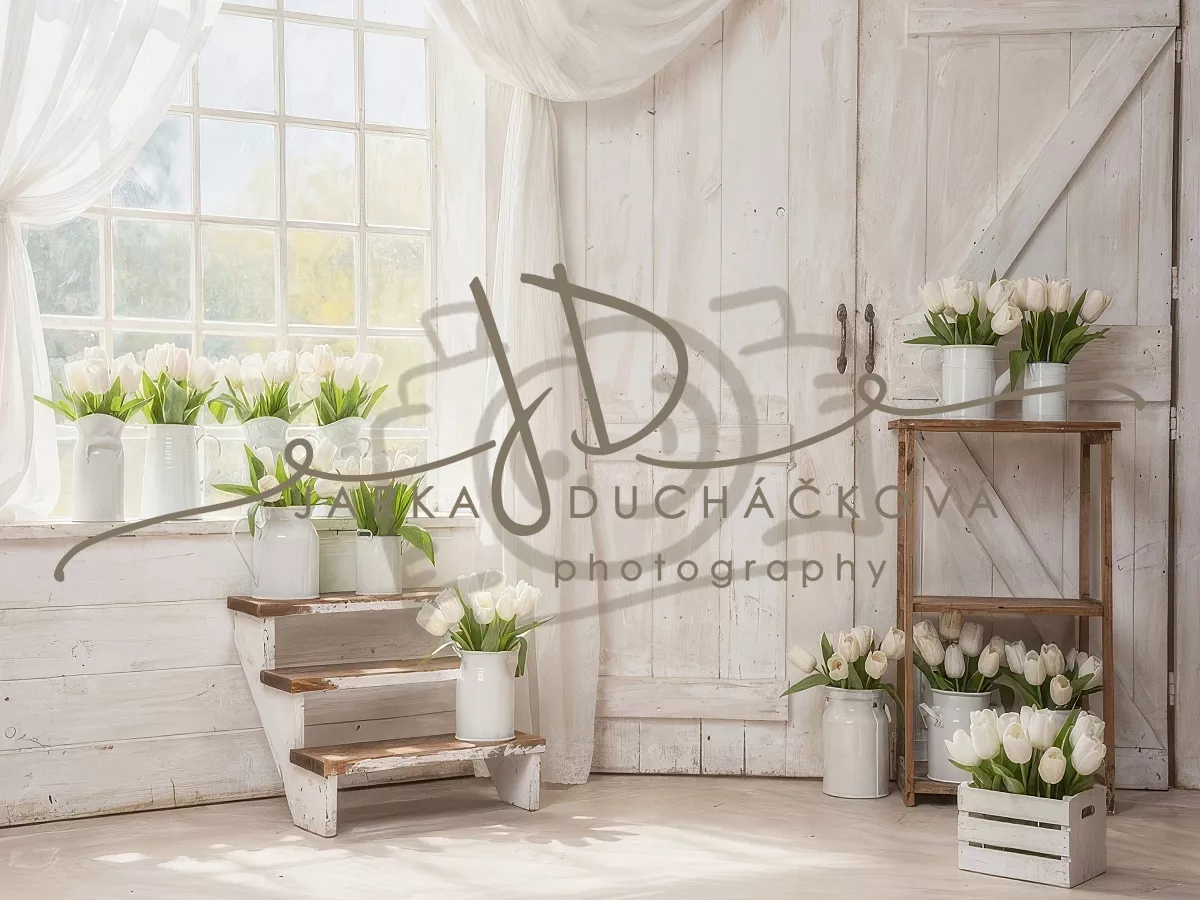 Stodoly / skleníky s bílými tulipány